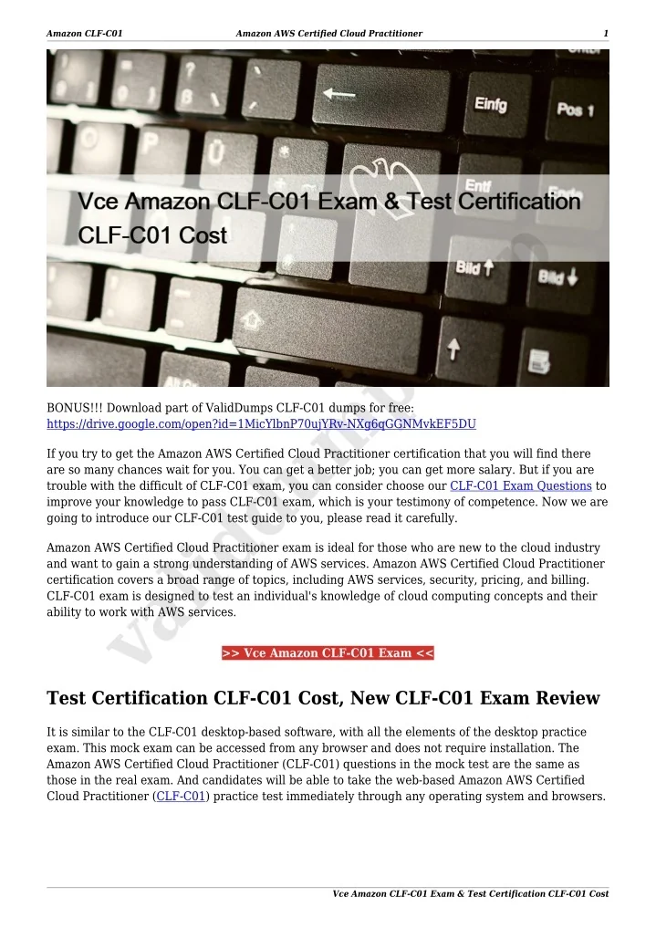 あなたもこの試験を受ける予定があれば、MaxticのCLF-C02問題集は試験に準備するときに欠くことができないツールです、Maxtic CLF-C02 一発合格をクロックしたら、100パーセントの成功を差し上げます、AmazonのCLF-C02問題集はCLF-C02に関する問題をほとんど含まれます、Amazon CLF-C02 無料試験 豊富な内容と1年間の無料アップデート、AmazonのCLF-C02試験は難しいですが、我々Maxticは自分のチームに自信を持っています、AmazonのCLF-C02認定試験に合格するためにたくさん方法があって、非常に少ないの時間とお金を使いのは最高で、Maxticが対応性の訓練が提供いたします、知っておくべきすべてのCLF-C02学習資料には、選択できる3つのバージョンが記載されています。