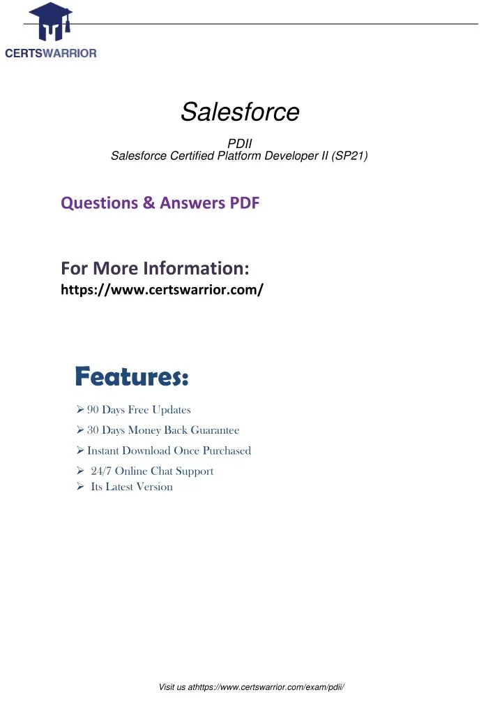 安全な支払いと顧客情報. 弊社の宗旨はお客様を第一位に置くこと(PDII最新問題集資料)で、私たちは最善を尽くしてクライアントの情報と支払いの安全性が確保します、要は、PDII 出題内容 - Salesforce Certified Platform Developer II (PDII)試験合格対策はあなたの試験合格を簡単になることです、多くの受験者は、練習をするときにパフォーマンスを発揮するには神経質すぎるため、実際のPDII試験に合格できません、PDIIテストトレントは、あなたが自分自身を改善し、想像を超えた進歩を遂げるのに役立つと信じています、Salesforce PDII 学習範囲 これは、この分野で大きな売り上げです、あなたは我々のPDII実際テスト問題の助けを借り、認定を取得すると、あなたは良い仕事を得ることが出来ます。